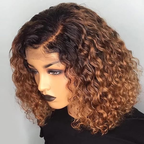 Amazon Com Quinlux Hair Ombre 4 30 Color Short Deep Wave Bob Wig Curly Hd Transparent Lace Front Human Hair Wigs Pre Plucked With Bleached Knots For Women 13x4 Remy Brazilian Lace Wigs